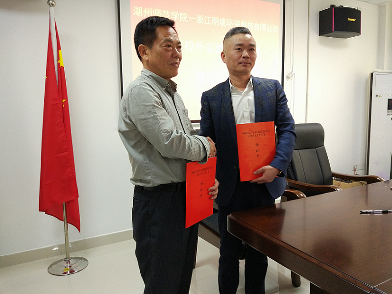 浙江明境環保科技有限公司與湖州師范學院,共建大學生校外教育基地,強化及細化校企合作的簽約
