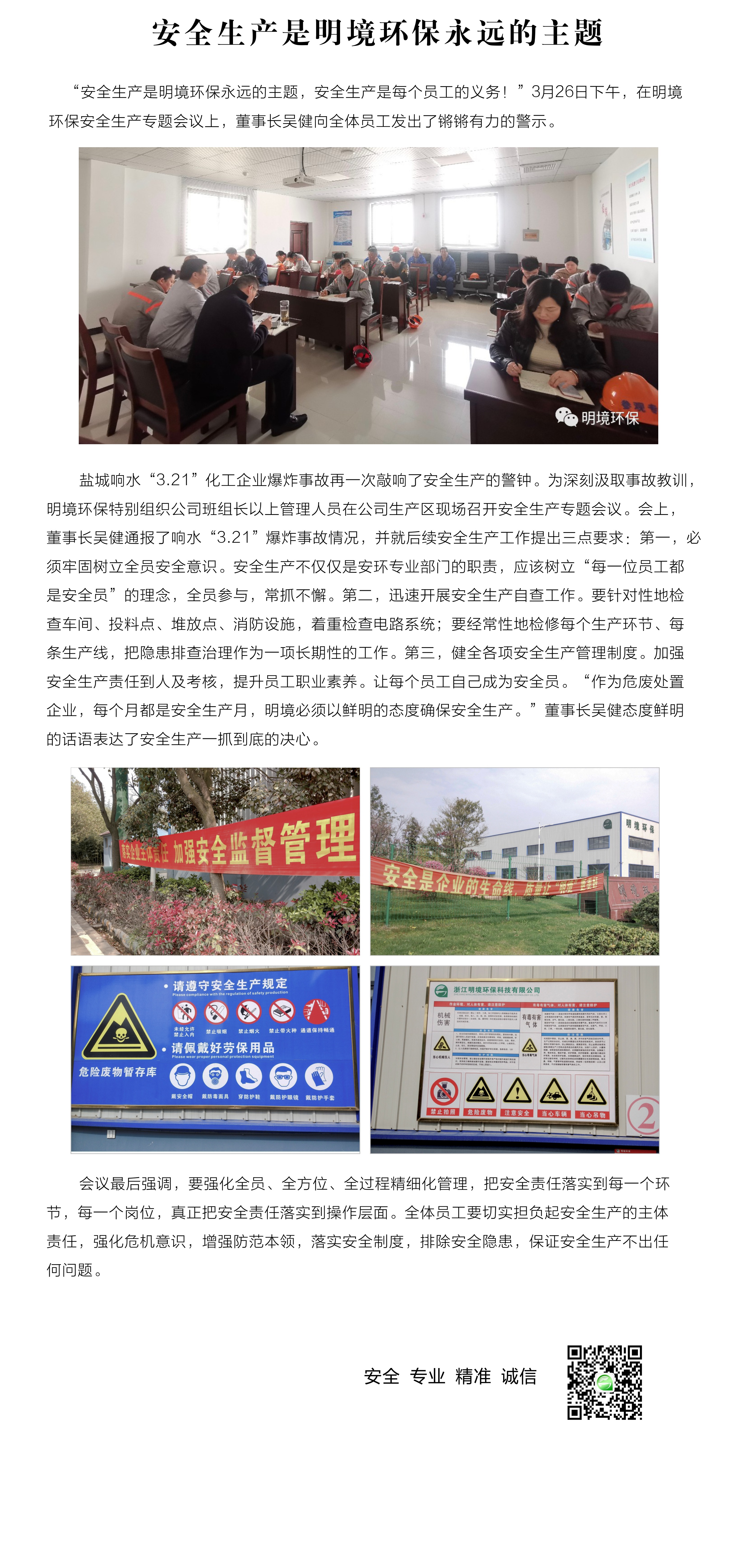 安全生產是明境環保永遠的主題
