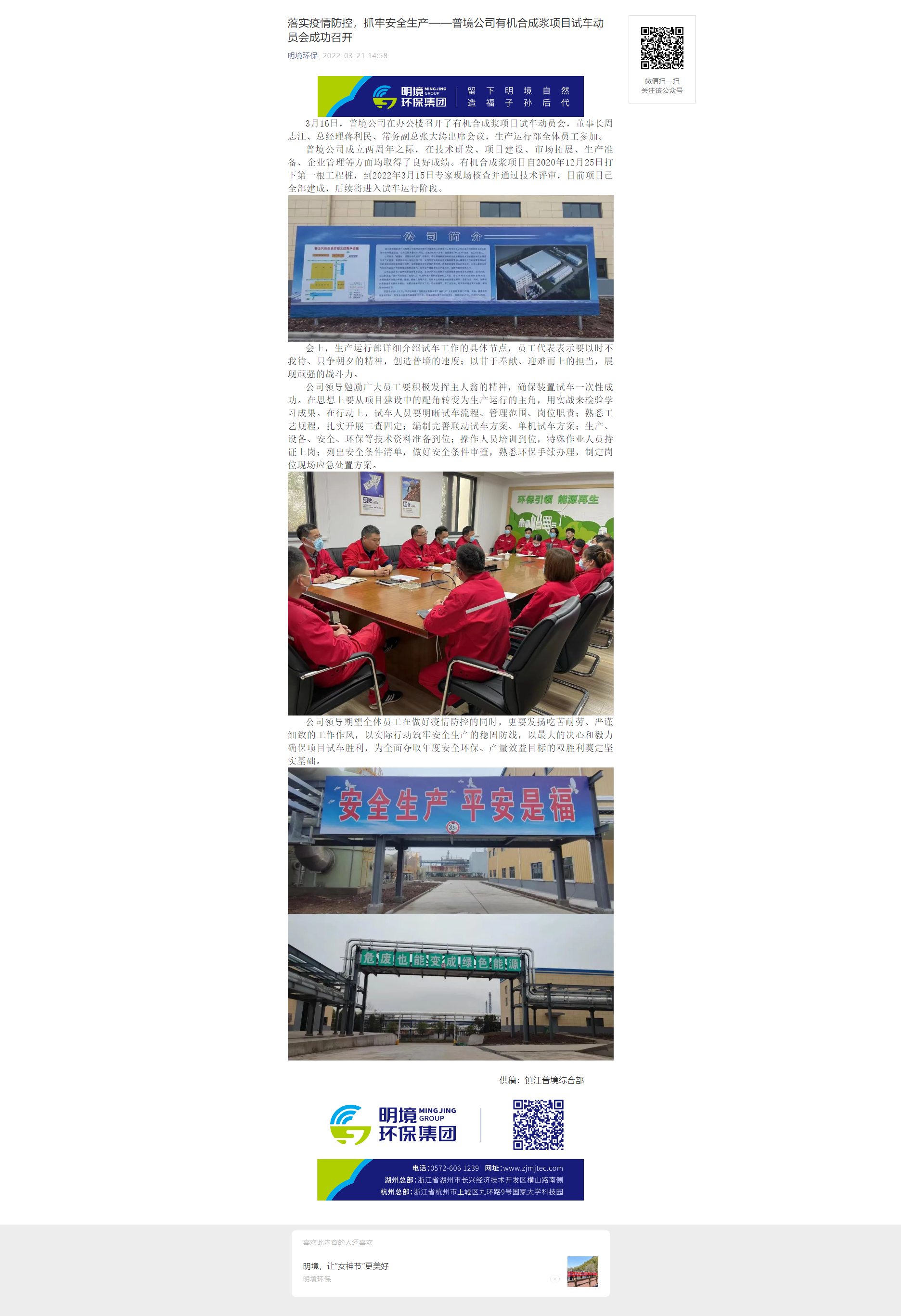 落實疫情防控,抓牢安全生產——普境公司有機合成漿項目試車動員會成功召開