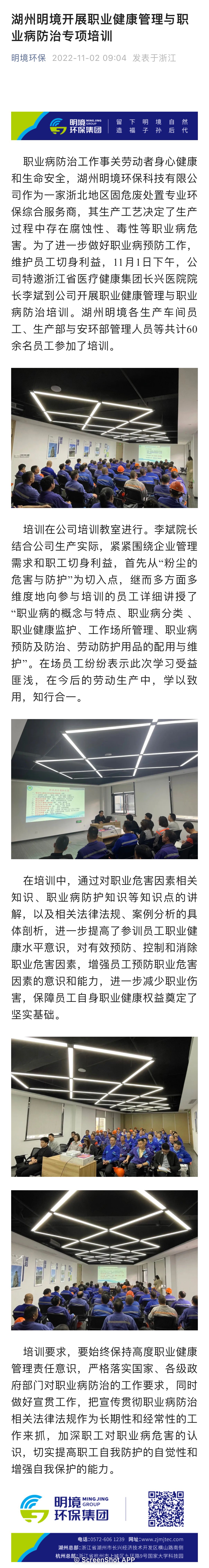 湖州明境開展職業健康管理與職業病防治培訓