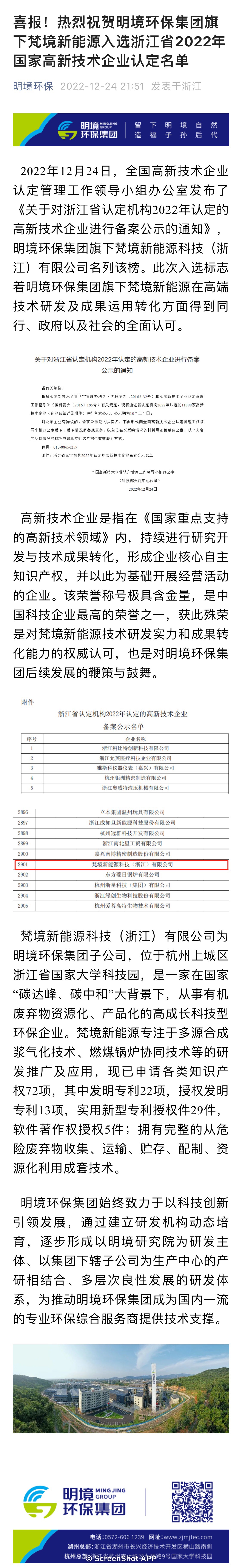 喜報!熱烈祝賀明境環(huán)保集團(tuán)旗下梵境新能源入選浙江省2022年國家高新技術(shù)企業(yè)認(rèn)定名單