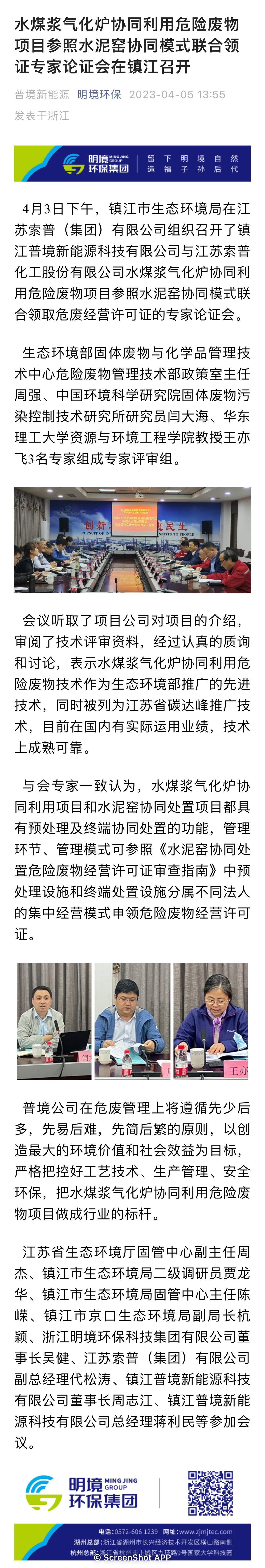 水煤漿氣化爐協同利用危險廢物項目參照水泥窯協同模式聯合領證專家論證會在鎮江召開